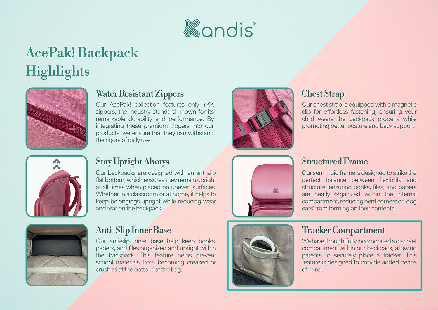 Your child’s world is growing - school buses, classrooms, enrichment classes, playdates. With Kandis Trava, you can stay gently connected while giving them space, and it fits perfectly into our AcePak! Backpack's dedicated tracker compartment!.
